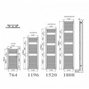Radiador toallero en acero con colectores verticales semicirculares 40 x 30 mm. con tubos horizontales de Ø 25 mm.