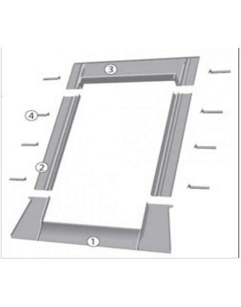 Está formado por 4 elementos básicos. La parte inferior del tapajuntas consta de un babero elástico de 220 mm de largo que incorpora una tira plástica engomada que garantiza la unión de éste al material de cubierta. Los solapes adosados a los lados facilitan el drenaje del agua. Los canales laterales evitan la acumulación de polvo, hojas, agua y nieve.